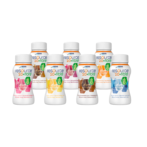 RESOURCE 2.0+FIBRE on runsasenerginen ja proteiinipitoinen täydennysravintojuoma, joka sisältää myös liukoisia kuituja. Yksi pullo sisältää 400 kcal, 18 g proteiinia ja 5 g kuitua. Tarkoitettu vajaaravittujen tai vajaaravitsemusriskissä olevien potilaiden ruokavaliohoitoon. Käytetään terveydenhuollon ammattilaisen ohjeiden mukaan. Seitsemän eri makuvaihtoehtoa. Kliininen ravintovalmiste.