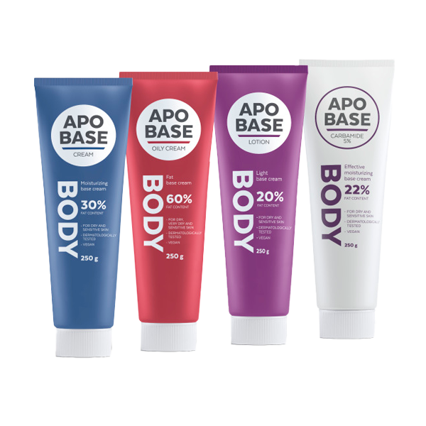 APOBASE-TUOTTEET on tarkoitettu jokapäiväiseen ihon kosteuttamiseen ja puhdistamiseen. Voiteita voi käyttää myös kuivien ja halkeilevien kantapäiden ja käsien pehmentämiseen sekä vartalon ja käsien voidepesuun suihkusaippuan sijaan. Omalle iholle sopivimman Apobase-tuotteen löytää parhaiten kokeilemalla. Kaikki Apobase-tuotteet ovat hajusteettomia sekä väriaineettomia.