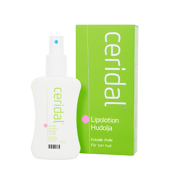 CERIDAL LIPOLOTION (100 ml) on ihoa kosteuttava koko perheen hoitoöljy, joka sopii käytettäväksi kasvoille, vartalolle ja intiimialueelle. Ceridal auttaa suojaamaan kuivaa sekä hilseilevää ihoa. Ihoöljy sisältää ihoa hellivää jojobaa, ja jättää iholle miellyttävän pehmeän tunnun. Tuote sopii hyvin myös kuiville limakalvoille.